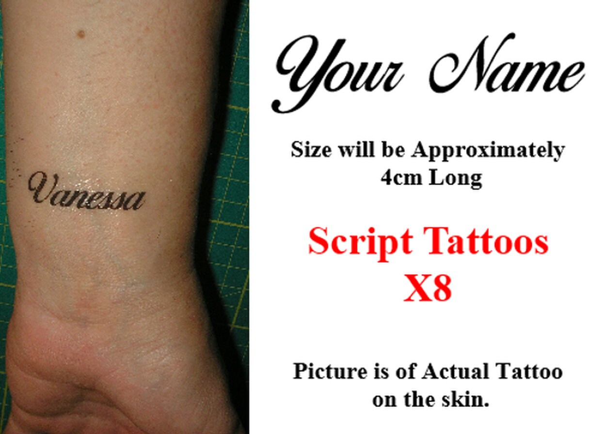 TATTOOS ARE PRINTED ON A SHEET APPRXIMATELY 95 X 80mm BEFORE CUTTING. WE WILL REDUCE THE FONT SIZE IF NEED BE TO FIT EVERYTHING ON.