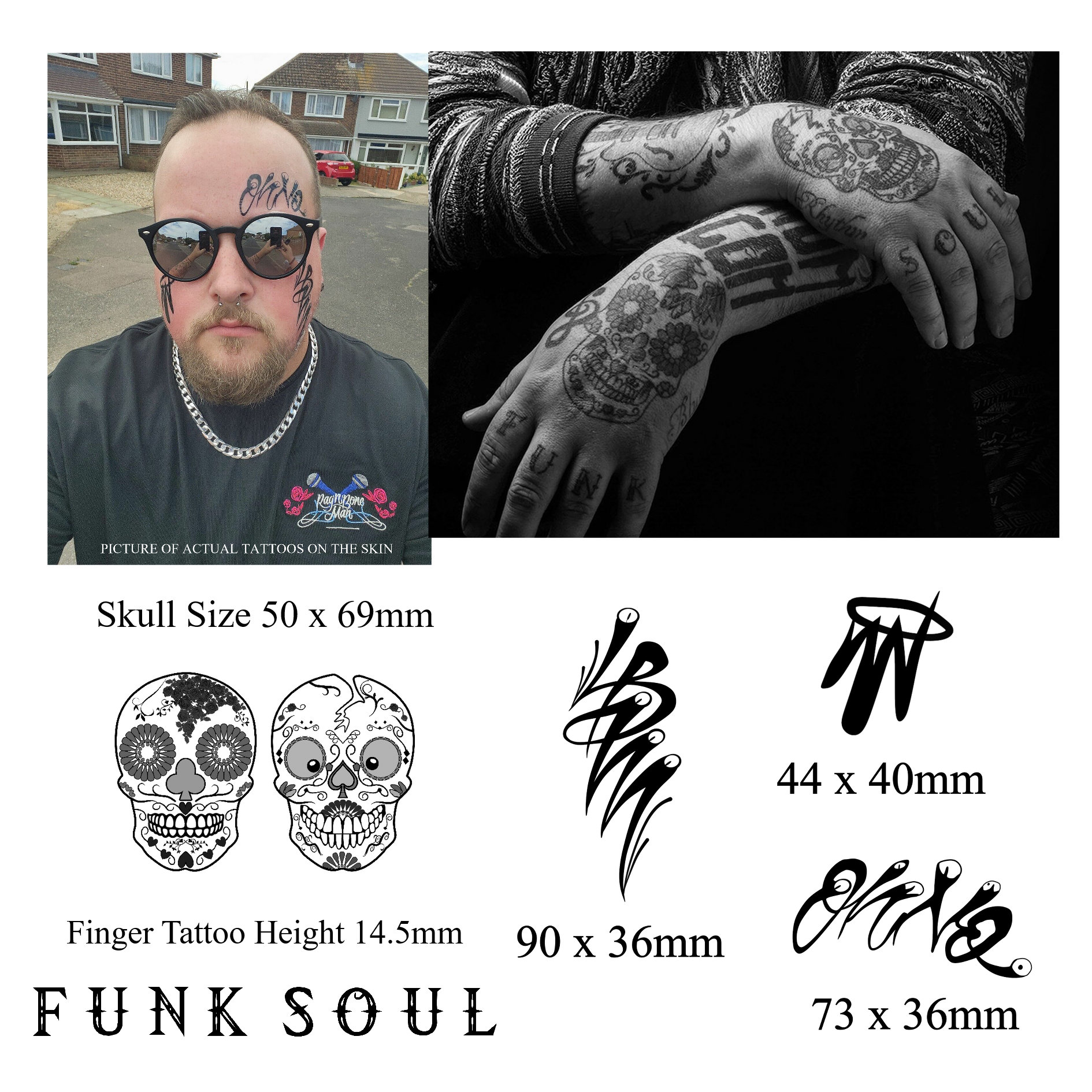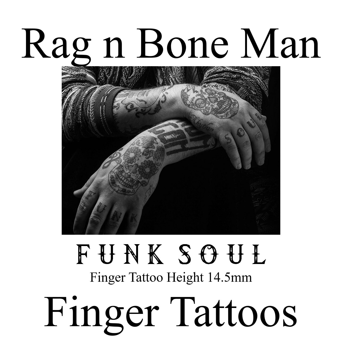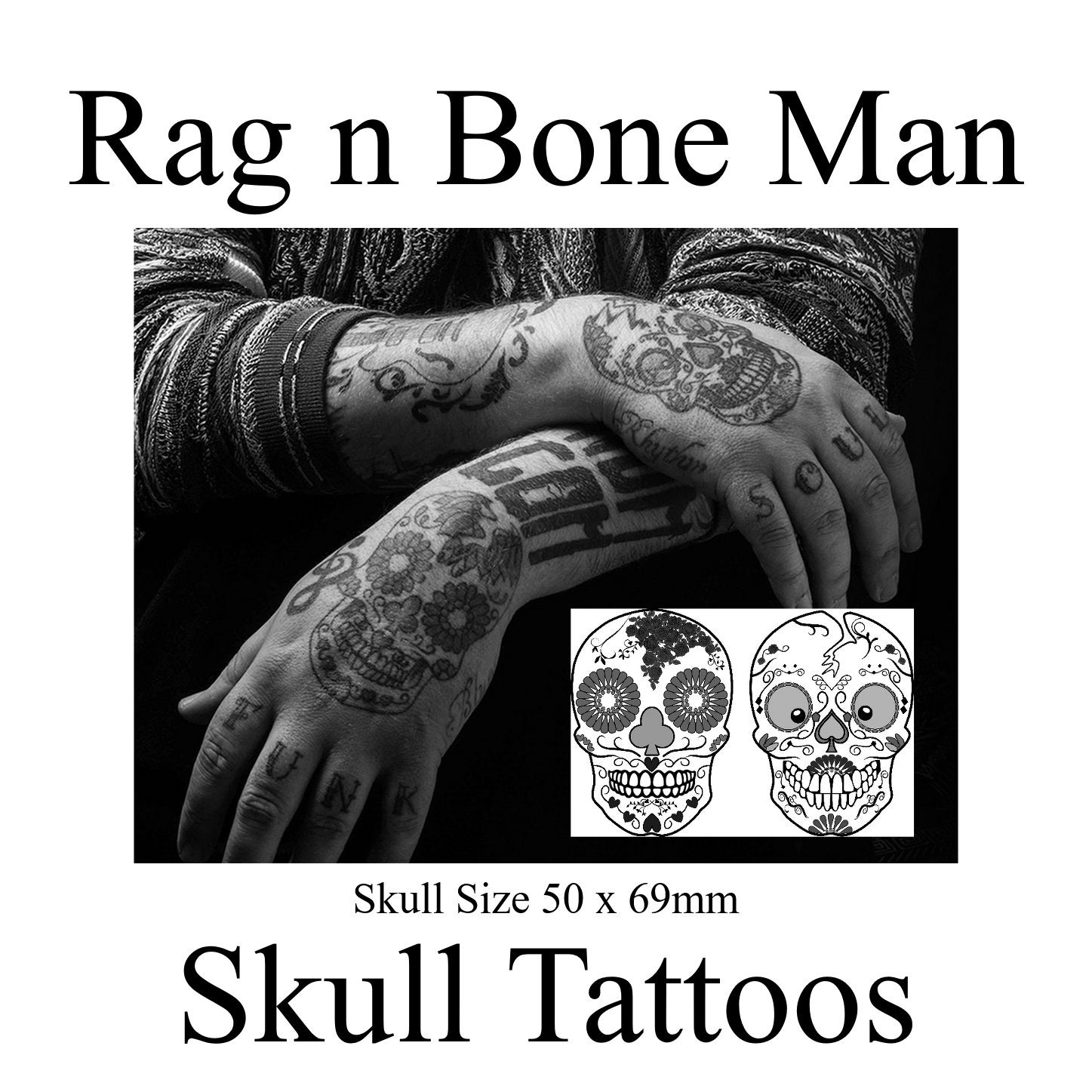 Rag n Bone Man Face and Hand Tattoo SetSizes as shown in pictures.These tattoos are my interpretation of those on Rag n Bone Mans Hands and Face, they are not an exact copy.PICTURES FOR ILLUSTRATION ONLY .