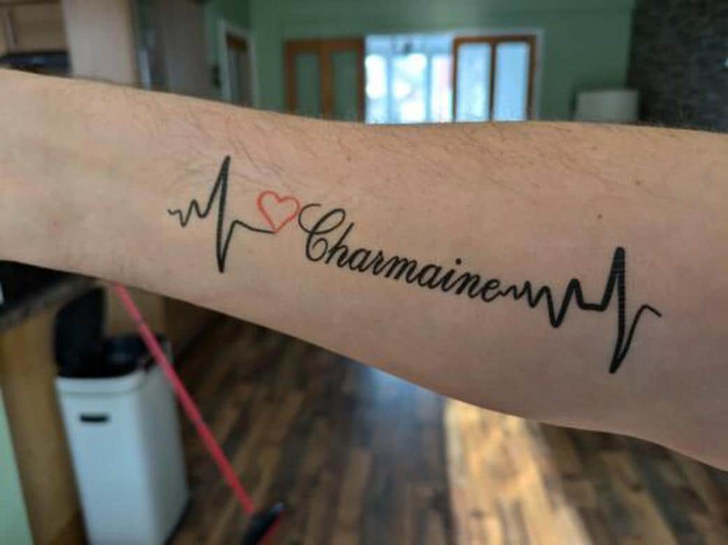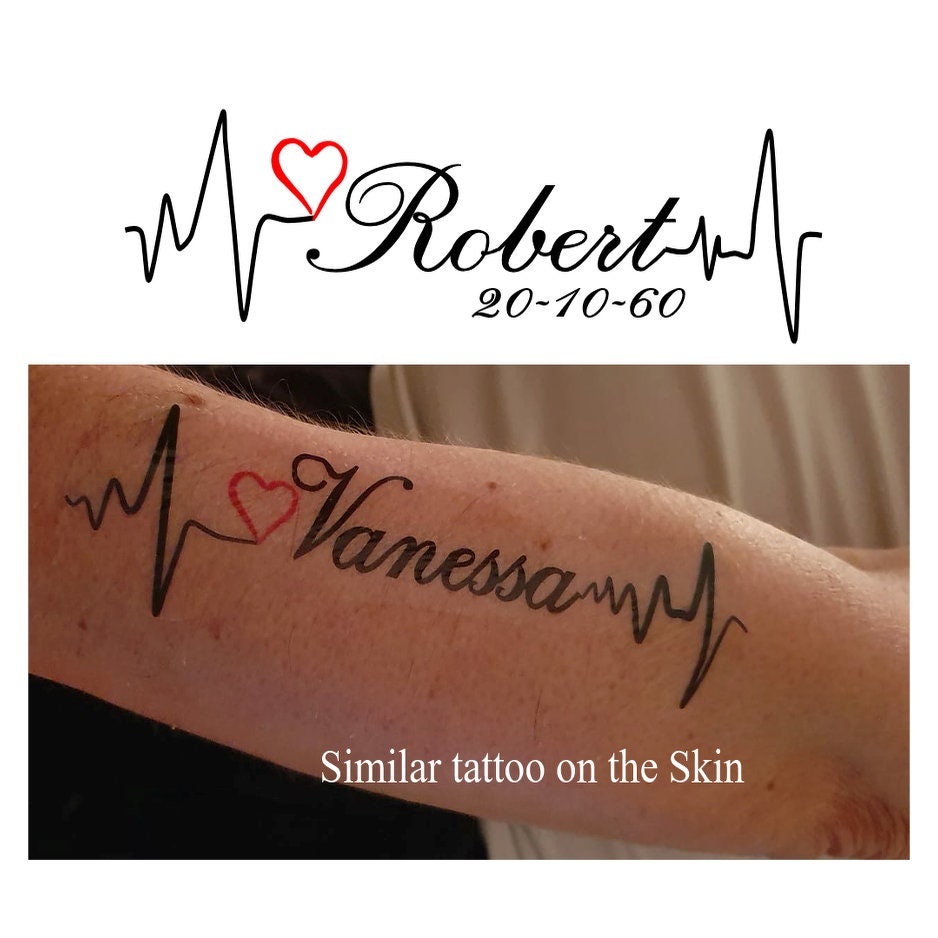 Large Forearm Heart Pulse Name and Date Temporary Tattoo