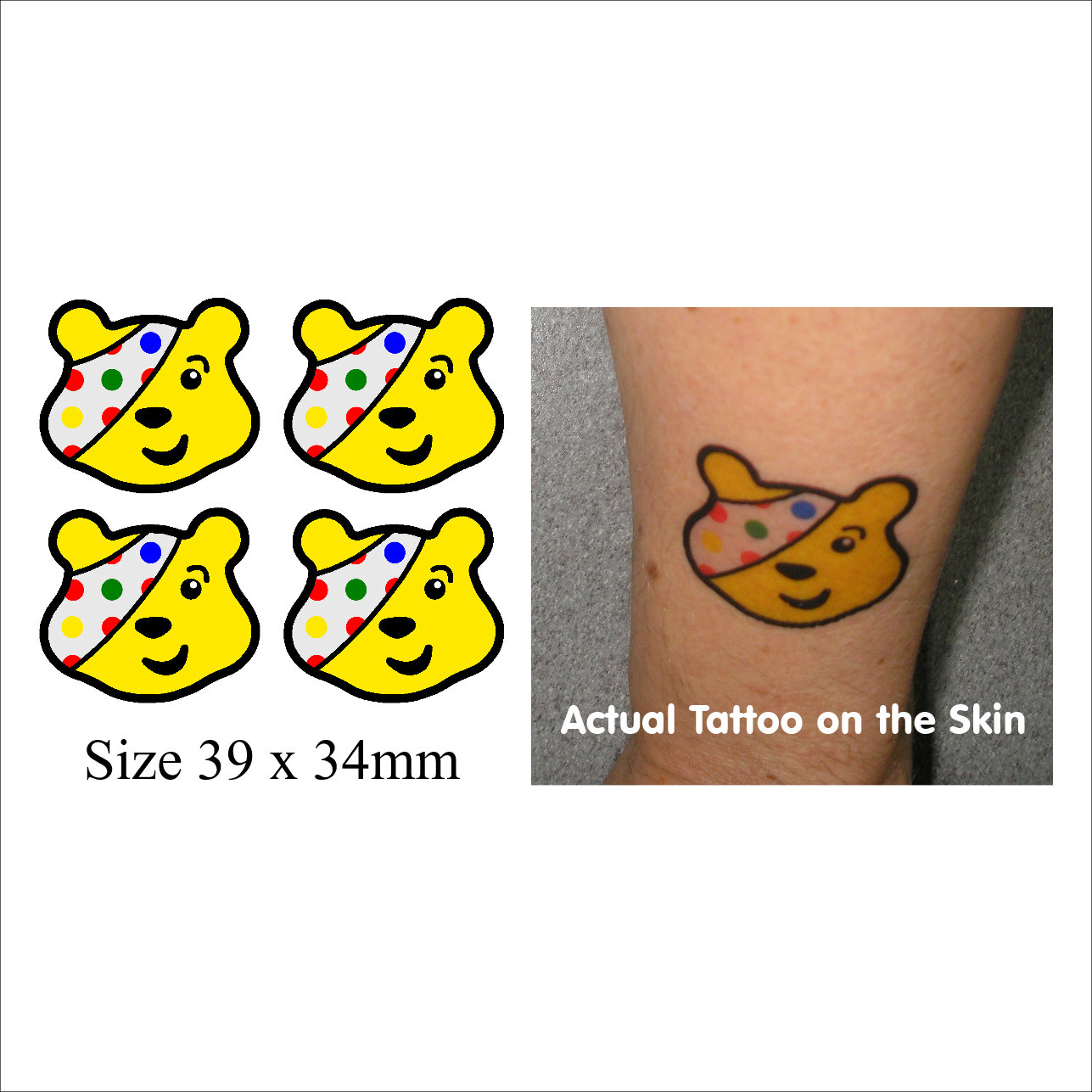 Pudsey (Children in Need) Temporary TattoosApproximate Size 39 x 34mmCHECK OUT MY OTHER ITEMS BECAUSE I ALSO SELLRUGBY/FOOTBALL TEAM TATTOO'SFANCY DRESS TATTOOS