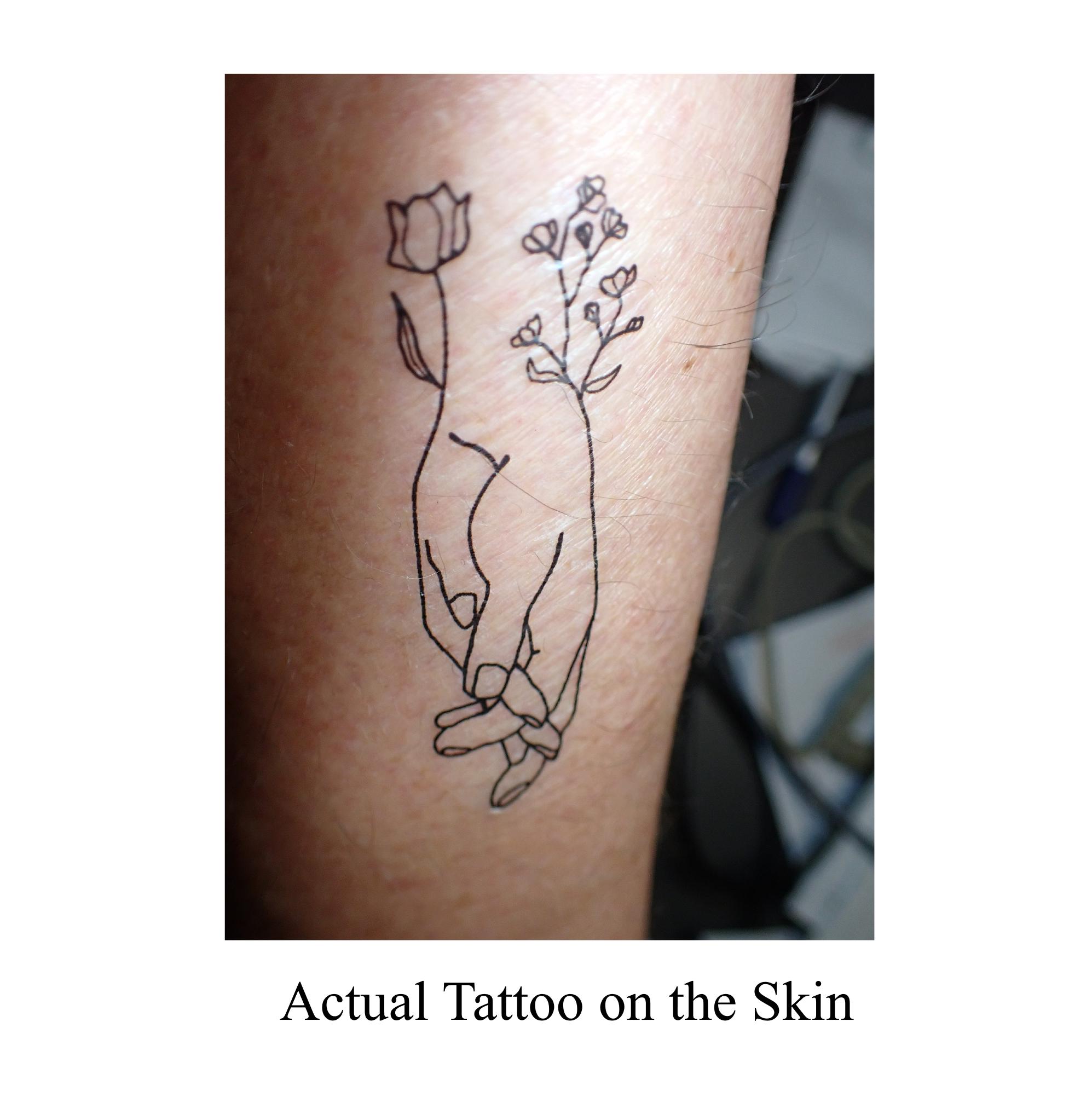Clasped Hands and Flowers Tattoo Size 60 x 22mmThis listing is for 2 tattoos at the size stated.Full photo illustrated instructions are included with all our tattoos