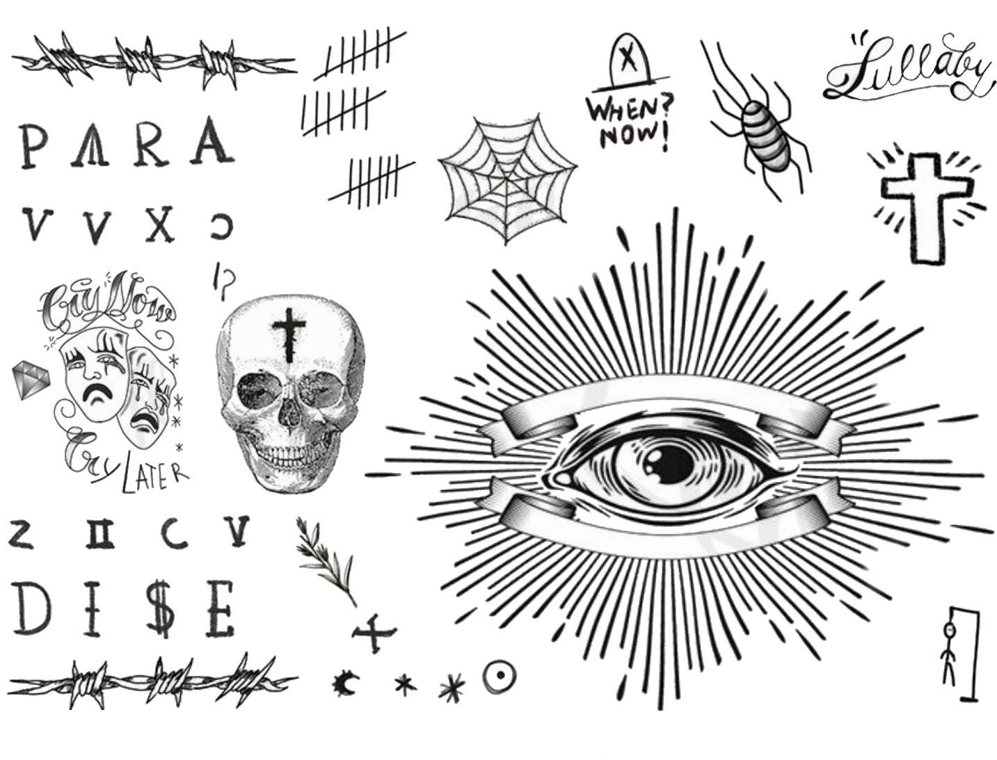 This listing is for an A4 sheet of tattoos which is my interpretation of that worn by Eric Draven.