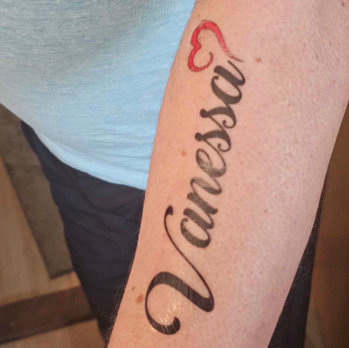 THIS ITEM IS 2 TATTOOS OF ONE WORD WITH A HEART AT THE END