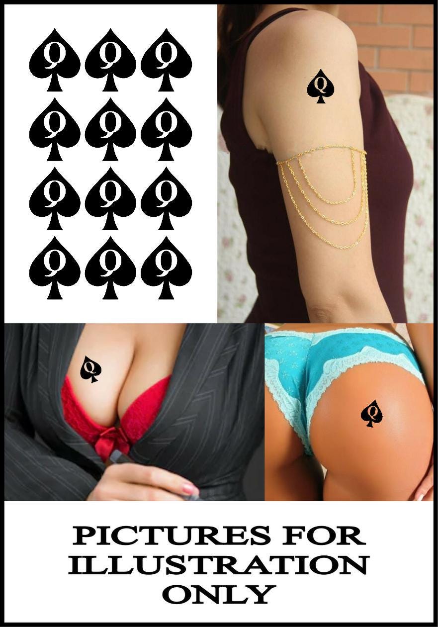 Queen of Spades Temporary Tattoo x12Size 22 x 28mmFull Photo Illustrated Instructions Enclosed with tattoos.